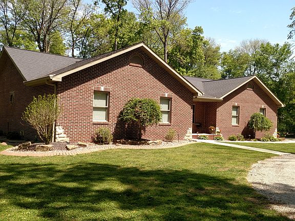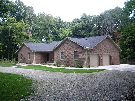 1940 sq ft upstairs, 1600 sq ft finished basement. 4 Bedrooms (3 upstairs, 1 down w/ egress window), 3.5 baths (2.5 upstairs, full bath downstairs), office. House sits on 2 wooded acres w/ oiled circle drive. Just outside Highland city limits, out past pistol club. Fully landscaped yard with trampoline, custom cedar swingset/fort, aluminum fenced back yard w/ gates. Highland City Power, LP Tank for (2) gas fireplaces and stove, Geothermal electric heat pump. Custom cherry cabinets throughout, granite counter tops in kitchen, custom great room cabinets. Ceiling fans in bedrooms, office, great room, and garage. 2 ½ car oversized garage, concrete driveway, oversized gutters w/ gutter helmet, 3 sides brick, stone corners. House built in 2007, new floor tile upstairs in full baths and new granite counters in kitchen in 2017. Basement has custom stone fireplace, wet bar/kitchen with custom cabinets, bedroom with egress window and large walk-in closet, and full bathroom with tub/shower. Lawn mower storage under back patio.
