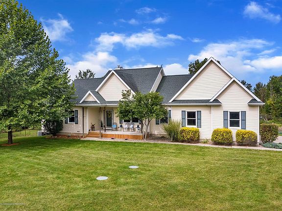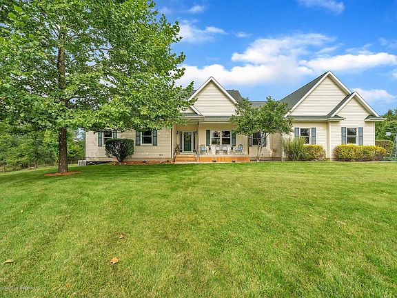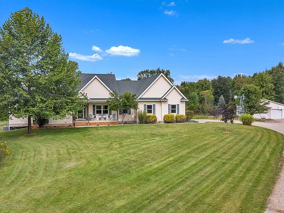 Peace, calm and quiet is the perfect description of this location. 10 plus acres showcase this open and airy country home. The back deck overlooks the beautiful pond, stocked with perch, bass and blue gill. The front porch is perfect for morning coffee. 4 bed/3bath, formal dining, breakfast nook and lovely white cabinets has everything you've been looking for. Complete with a comfortable main bedroom with walk in closet and en suite bath with double sinks. In addition, there is a huge 40x60 outbuilding with another 400 sq ft lean to and a finished office space. Perfect for a business set up or the ultimate workshop. The lower level is partially finished with the 4th bedroom, garden window, a full bath, future kitchenette space is plumbed and gas line for a stove, wood stove and another smaller work shop. Tons of storage space throughout the home. There is space for everything! Reserved but negotiable are the small freezer in laundry and Frig in L. level