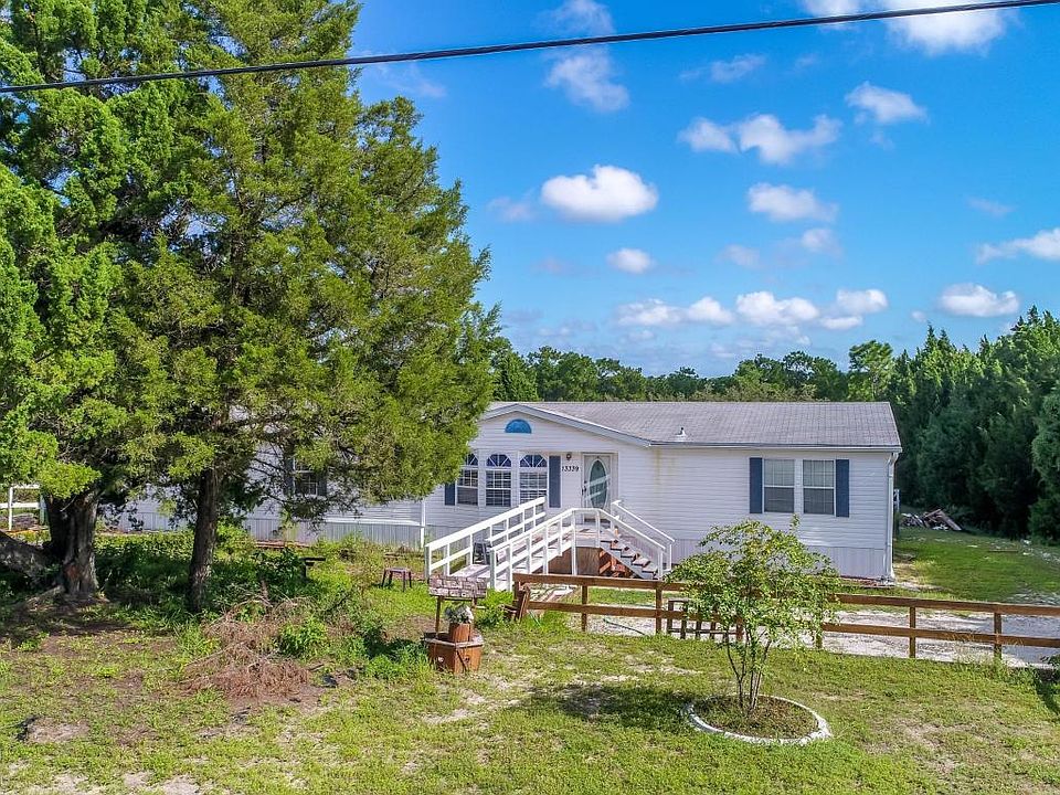 ZONED AG! Bring the Pigeons & Horses! 4 Bedroom, 2 Bath Manufactured Home on 2.2 ACRES. Convenient Location near schools, shopping, restaurants & Suncoast Parkway. This is a solid home with 2345 SF of Living Space and large rooms throughout. Spacious Open Floor Plan, Living Room/Dining Room. Island Kitchen fully applianced with abundance of cabinets and counter space. Sliders to REAR DECKS and Hot Tub.FPL Family Rm, Master Bedroom has adjoining sitting room perfect for office or nursery, Master Bath with jetted tub, separate shower and HUGE walk in closet. Lg Laundry Room. 3 other Bedrooms & Full Bath at opposite end of house. Approx 1 ACRE is FENCED and open, perfect for animals,Back acre is lightly wooded and can be easily cleared. New AC 2010, New drainfield 2015. NEW ROOF Oct 2017.