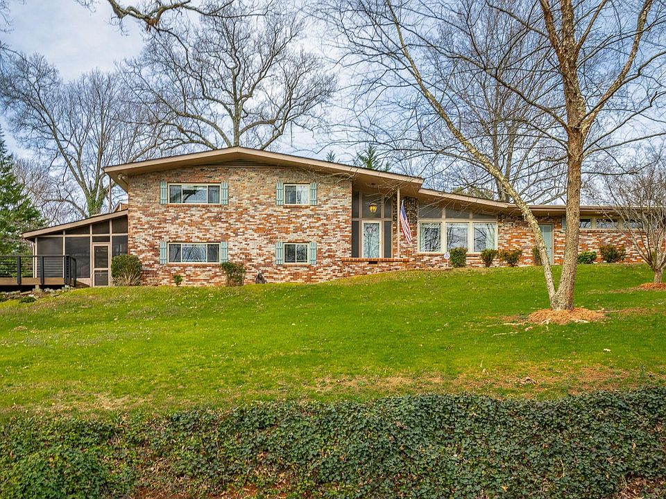 Well built, well maintained home in central Chattanooga location with huge lot and great view! This is a very unique three level home built in 1960 in Chattanooga is now on the market after 25 years in private ownership. This home has been completely renovated throughout the owners tenure. Beautiful Cypress wood throughout the house. Entrance has 15 foot cathedral ceilings with large beams. Very open living, dining combination. Backsplash has been added in the kitchen, bar and den. Hall leading into the bedrooms has built in shelves with closed storage area. Sit down, built in vanity in the master bedroom. Sunken library has removable custom bookshelves. Den/family room contains a custom wet bar with cabinets having lighted glass shelves. Propane fireplace. Screened in porch for privacy leads to outdoor deck with horizontal, wire railing. Property includes two cement ponds with pump, re-circulating fountain. There is plenty of storage throughout this home. All light fixtures have been replaced. Spacious garage includes workbench. This well maintained gem will not last long, call today to schedule your private showing.