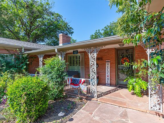 This charming home offers amazing curb appeal with a stone pathway leading to a large, covered front porch - perfect for relaxing or entertaining. Inside, you'll find two spacious living rooms at the front of the home. One offers flexibility for two separate sitting areas or one oversized gathering space. The second features a brick fireplace and stunning built-in cabinets and shelving on three of the four walls. Plantation shutters in every room enhance the home’s charm and character, complemented by original woodwork with beautiful trim detailing throughout. A large formal dining room easily accommodates a full-sized family table and connects to a casual dining area with two built-in buffet hutches - plus a third hutch leading into the kitchen. The kitchen offers space for an island or bistro table, built-in Sub-Zero fridge, dual ovens, gas cooktop, and ample counter space. Just off the kitchen is a 9x13 kitchenette with a second sink, cabinets, ice maker, room for a freezer or second fridge, and access to a half bathroom. The oversized primary suite includes a walk-in closet with built-in drawers and shelving. The mid-century style ensuite is divided for privacy, with two separate sink and toilet areas - one with a tub-shower combo, the other with a walk-in shower. A seated vanity with dedicated drawers is paired with additional built-in storage. Spacious guest bedrooms offer room to share for a large family or spread out, with Bedrooms 3 and 4 connected by a Jack and Jill bath. A charming little nook with built in shelving - perfect for office, library or creative workspace. Outside, enjoy a covered patio with ceiling fans, a grill area with a privacy wall, and a courtyard with stone pavers. The courtyard features a wooden gate to the front yard and a wrought iron gate to the expansive side yard, which includes a pergola, gazebo, firepit, stone paths, a bench, shade trees, and plenty of plush green grass for play or relaxation.
