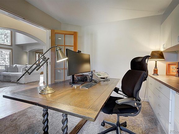 Welcome to your dream mountain retreat in the prestigious Ridge at Hiwan neighborhood, offering a perfect blend of luxury, comfort, and natural beauty. Situated at the end of a quiet cul-de-sac, this property feels like a private sanctuary surrounded by towering pines and rock outcroppings, yet is just minutes from shopping, schools, parks, and recreational trails. Step in to a main level exuding warmth and sophistication, with hardwood floors leading to an inviting kitchen featuring a large island, stainless appliances, and granite counters—perfect for culinary enthusiasts. The office, with French doors and built-ins, offers mountain views and a peaceful workspace for remote work or study. The living and dining rooms boast vaulted ceilings and abundant natural light, a great layout for entertaining. The family room features a gas fireplace and large windows for a cozy, bright atmosphere. The lower level provides additional living space, two extra bedrooms, and a full bath, perfect for guests and room for an in-home gym. Upstairs, the primary bedroom is a serene escape, with spectacular mountain and Elk Meadow views, a spa-like bath, and two walk-in closets for luxury and convenience. Three additional beds and two additional baths complete the upper level. Outdoors, the wrap-around deck invites you to enjoy the mountain air and breathtaking views toward Bergen Peak. A deck off the kitchen offers shade and privacy, perfect for grilling or enjoying morning coffee. Just minutes away are Elk Meadow, Bergen Park, the Rec Center, and a network of trails for hiking, biking, and outdoor adventures. Downtown Evergreen, a short drive away, features charming shops, galleries, and restaurants, while I-70 offers easy access to Denver or the slopes. Located in a top-rated school district with highly regarded schools nearby, this home delivers the Colorado mountain lifestyle at its finest. Don’t miss the chance to own this rare gem in one of Evergreen’s most desirable locations!