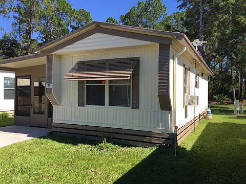 Completely Renovated in 2016. Fresh Paint inside and out, Roof over Roof cleaned and resealed, new gutters added on all sides. All new window and porch screens. New laminate flooring and ceiling fan in living room, gas range, air and heating units, hot water heater, toilet, medicine cabinet, and bathroom vanity. New washing machine added to kitchen. remote HD antenna No need for cable This home is in immaculate condition and ready for many years of carefree living. Beautiful View of private backyard with no rear neighbors. Large 16 x 22 Sunroom with vinyl windows and new carpet, for added living space. Can be converted to fully insulated living space if desired. Additional parking available in back of home, and the community includes RV, boat, or trailer Parking area right near this lot.