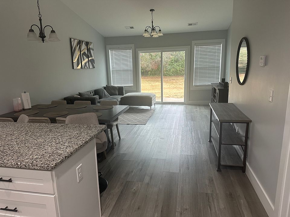 This duplex has open-floor plan with vinyl flooring throughout the home, including in all 3 bedrooms and very spacious laundry room. Upon entering the kitchen you will find it comes equipped with stainless steel appliances (microwave, stove/range, fridge) and a pantry. The master bedroom has walk-in closet and double vanity sinks. Also you can find it with private patio perfect for weekend. The duplex has some furniture already, also including dryer and washer. Our requirements are - Security deposit monthly payment - Credit score not below 600 if lower you need to pay 1.5 times - Income 3X rent amount - No prior evictions. We check criminal background. Renters will pay for water, energy, trash, internet