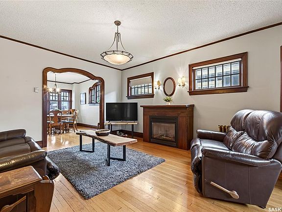 Welcome to this beautiful 1,675 sq. ft. well cared for character home, where charm and warmth meets thoughtful upgrades. Step into the generous entryway, a welcoming space for guests to shed coats and shoes before moving into the heart of this stunning residence. Original hardwood floors flow gracefully across both levels, complemented by bevelled glass doors, rich wood trim, and elegant archways that highlight the home’s craftsmanship. The main living room is anchored by a unique gas fireplace, crafted with reclaimed wood from the historic Lumsden elevator—a great conversation piece for cozy nights. Just beyond, the bright south-facing office offers an inspiring workspace and the perfect haven for your indoor greenery. Gatherings are effortless in the spacious dining room, ideal for holiday feasts or casual weekly entertaining. The kitchen features white cabinetry, stainless steel appliances, a double oven, and ample counter space. An eat-up breakfast bar invites conversation and connection while meals are prepared. Upstairs, the expansive primary bedroom includes a walk-in closet, while two additional bedrooms and a 4-piece bath with cast iron tub and updated tiles complete the second floor. The fully finished basement is a true bonus, warmed with in-floor radiant heat. With a kitchen area, family room, fourth bedroom, 4-piece bath, and laundry, it offers excellent potential as a roommate suite or guest retreat. Notable updates to the home include a durable metal roof and a high-quality Viessmann boiler , electric panel. Outdoors, the private backyard is perfect for summer relaxation on the low-maintenance deck. An oversized single garage adds even more value to this rare find. If you’re seeking a well-maintained character home close to downtown, this gem may be for you!