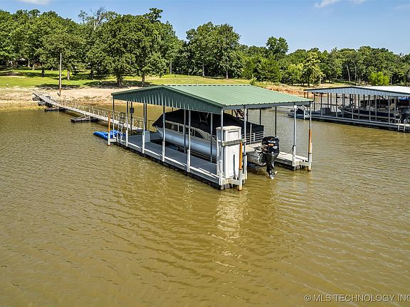 LAKEFRONT LIVING with NO HOA! This spacious & beautifully maintained waterfront home includes a private covered boat dock (10x26 inside dimensions) with lift. Property is designed for comfort, fun and lakeside relaxation and ready to be a VRBO OR AIRB&B!!Enjoy outdoor living with a 14x38 covered front porch, a 13x30 wood deck out back perfect for gatherings, also a concrete pad that measures 13x12 for outdoor placement for grills and gear. A 2+ 20x30 attached inside garage w/ concrete flooring as well as a concrete 30x30 driveway for parking your vehicles. A detached storage building for all those lake toys and gear is included and measures 14x30. Now step inside this 3bd 2ba beauty and say WOW to those waterfront views. All kitchen appliances included, plus a short walk or quick golf cart ride away to the fabulous Sissy Beach. Meet new friends, weekend barbeques, play a game of cornhole, volleyball or horseshoes. If your looking for a peaceful escape or lively lake lifestyle this home delivers it all!!