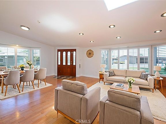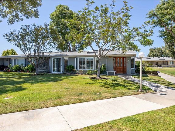 Mutual 12–57C is a beautifully remodeled corner unit located in a desirable four-plex on a lush greenbelt, with convenient drive-up access on the side. This elegant home has been tastefully updated. Hardwood flooring throughout, complemented by marble tile in the entry and bathrooms. The kitchen features maple cabinetry with granite countertops, a center island with storage, and GE stainless steel appliances. Other upgrades include a washer and dryer, Jacuzzi tub in the primary bathroom, and a shower in the guest bath. You'll love the four vented skylights, four bay windows with storage and plantation shutters, and the sliding glass door from the primary bedroom to the garden. Additional highlights include central A/C and heat, an oversized primary bedroom with a walk-in closet, and parking conveniently located in Building 141, Space 14. Neighbors in Mutual 12 have added charming front patios, enhancing both curb appeal and outdoor living space. Leisure World is a 55+ guard-gated senior community offering resort-style amenities including 6 clubhouses, a 9-hole par-3 golf course, swimming pool, state-of-the-art fitness center, and endless activities to keep you engaged. Just 1.5 miles from the beach, residents also enjoy refreshing ocean breezes year-round.