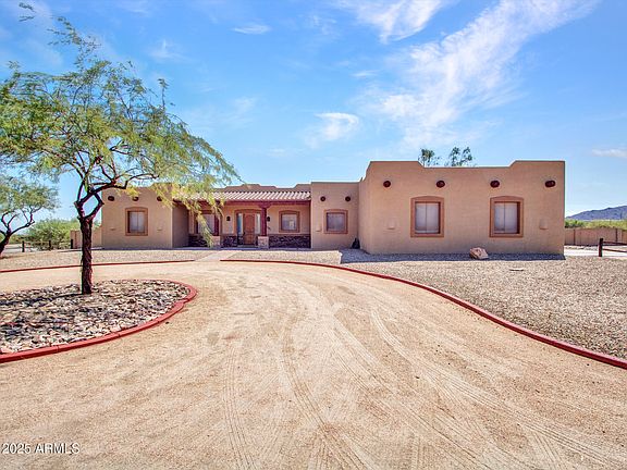 Luxury Custom Home on 1 Acre with Stunning Views .This 4-bedroom, 2.5-bath home offers 2,854 sq. ft. of thoughtfully designed living space with a split floor plan for privacy and flexibility. Built with energy-efficient ICF construction (Insulated Concrete Forms), this property combines strength, comfort, and efficiency. Step into the gourmet kitchen featuring high-end appliances, granite counters, knotty alder cabinetry, walk-in pantry, and a spacious breakfast bar that flows seamlessly into the great room and dining area—perfect for entertaining. The luxurious primary suite includes a walk-in shower, jetted tub, dual sinks, and an oversized walk-in closet. Additional highlights include: Oversized 3+ car garage (approx. 1,200 sq. ft.)-see more... Tile flooring in main areas & solid-core wood interior doors. Expansive laundry room with ample storage. Extended covered porches, front & back. Decorative block walls with desert landscaping. RV gate, extra concrete slab, and room for all your toys. Enjoy breathtaking mountain and city light views from this private 1-acre property with a circular drive and no HOA.