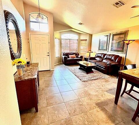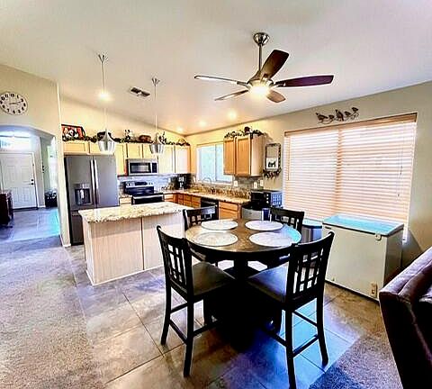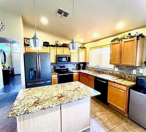 One of the best homes in the whole neighborhood. Buyers and their agents come see this 3 bd, 2 ba, 1640 Sq. ft. home. Entry is a bright and spacious living room and formal dining with vaulted ceilings that flow into the eat-in kitchen with island that overlooks the large family room. Upgraded stainless steel appliances, with granite countertops. Tile in all the right places and upgraded carpet. Wood blinds, modern fans and lighting with inside laundry. Garage has plenty of cabinets with soft water system. 1 year old TRANE 4-ton AC; warranty can be transferrable. Professional landscaping with 25 ft. covered patio/w ceiling fans. 12x14 gazebo & 8x12 pergola/w lighting set on pavers and stamped concrete next to artificial lawn. Come see and be amazed at the value.