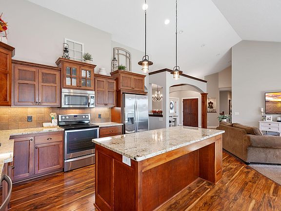 Welcome to this meticulously maintained executive home located conveniently in Zimmerman on Lake Diann and Fairway Shores Private Golf Course. This home is nestled amongst mature trees on a half an acre with impeccable flower beds and ample deck spaces for your enjoyment. This home boasts large windows that allow natural light to filter into every room of this home. Windows were professionally tinted for privacy and climate efficiency and so were the glass doors. The kitchen welcomes you with Granite counter tops,large island and beautiful maple cabinets along with stainless steel appliances that await your