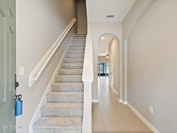 Welcome to this spacious 3-bedroom, 2.5-bath townhouse FOR RENT in the highly sought-after gated community of Verano at Bartram Park. The open layout includes a modern kitchen with stainless steel appliances, abundant counter space, and plenty of cabinetry, flowing seamlessly into the dining and family room. Step out to the screened and tiled lanai ideal for morning coffee or unwinding in the evening. Upstairs, the primary suite offers a generous bedroom, ensuite bathroom with garden tub, dual vanity, and a large walk-in closet. The second floor also includes two additional bedrooms and a conveniently located laundry room with washer and dryer included. Additional features include a one-car garage for parking and storage, plus access to community amenities such as the pool, clubhouse, and neighborhood sidewalks.