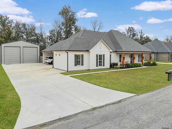 Welcome to this custom-built Ascension Parish home, offering better-than-new quality on nearly half an acre. Thoughtfully designed and meticulously constructed, this property showcases exceptional features throughout—including a master closet with direct access to the laundry room, a hidden vanity in the primary bath, a Jack-and-Jill bathroom for the kids, and even a built-in paper towel drawer within the oversized kitchen island. Summer days are made for enjoying the gunite pool and spa, complete with WiFi controls and surround sound for effortless outdoor entertaining. When cooler weather arrives, the cathedral-ceiling back porch and cozy fireplace provide the perfect setting for relaxing evenings. For hobbyists and outdoor enthusiasts, the 30x40 workshop is an outstanding bonus—ideal for storing a boat or RV and thoughtfully equipped with added concrete to accommodate a floor jack. This home truly offers something special for everyone and is ready to welcome its next family.