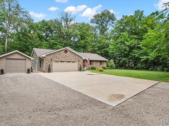 Tucked away in a quiet area of Highland, this beautifully updated ranch sits on 2 acres surrounded by mature trees. Step inside to brand new wood floors, fresh paint, updated lighting, and an elegant fireplace wall that adds warmth to the living space. The home offers 3 bedrooms, 2 full and 2 half bathrooms, and a finished basement with a bonus room—perfect for a home office, playroom, or guest space. The master suite features a tiled walk-in shower, and personal touches throughout the home make it truly unique. Outside, enjoy the peaceful setting from the composite deck or relax in the jacuzzi tub, which stays with the home. Ask your agent about other items that are included. A three-car garage setup includes two attached and one detached space. Fresh gravel and new concrete add to the curb appeal and make this home ready to enjoy. If you’re looking for comfort, space, and privacy, this is one you won’t want to miss. Roof 1 y/o, Gutters 2 y/o, Water Heater 3 y/o, Hvac 9 y/o.