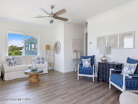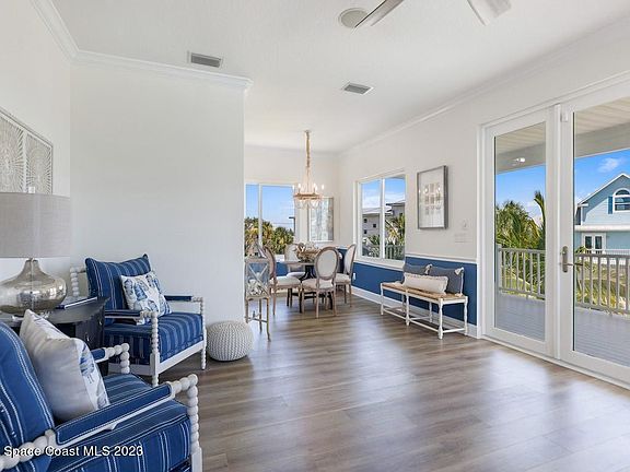 Stunning River Views. This unique, two story home offers a continuous vacation lifestyle. Totally remodeled interior, including painting, same high end plank flooring throughout the entire house, new high impact windows and doors on the second floor, new kitchen, new stainless steel appliances, new ceiling fans, new vanities, new toilets and sinks in the bathrooms, new water heater, new coil for the AC unit (2017), new upgraded garbage disposal, new blinds and many more. The furniture is negotiable. Room sizes are approximate.