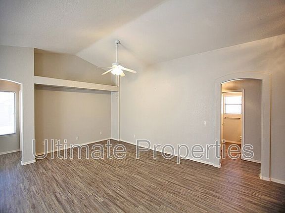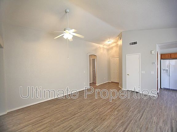 3 Bedroom + 2 Bathroom Home. Wood-looking vinyl plank flooring throughout. Carpet in bedrooms. Kitchen features refrigerator, range/oven, built-in microwave and dishwasher. Master suite features dual sinks, walk-in closet. Backyard features covered patio. 2 Car garage