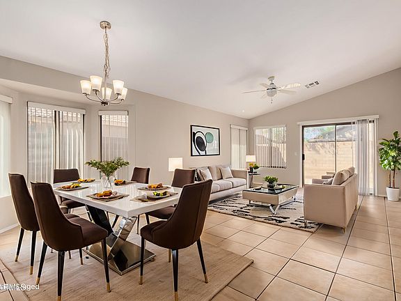 Welcome to this beautiful and well-maintained home in the highly desirable community of West Point, featuring NEW interior and exterior paint! Step inside to a bright Living Room/Dining Room with soaring vaulted ceilings and abundant natural light, flowing seamlessly into a spacious Family Room and open Kitchen with a convenient breakfast island. Modern laminate plank and tile flooring, neutral interior tones, and stylish window coverings create a fresh, inviting atmosphere throughout. The expansive backyard with a double gate is ready for your personal touch--whether it's a garden, play space, pool or outdoor retreat. Ideally located near schools, shopping, dining, Surprise Community Park with pools, tennis, and more, plus just minutes from freeway access, this home truly has it all!