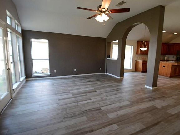 This home offers 3 bedrooms, 2 bathrooms, and a 2-car garage. The formal dining room can be used as a study or living area. Highlights include an open kitchen-family room layout, updated counters, 42" cabinets, a spacious island, stainless steel appliances, and porcelain wood-look tile throughout the main areas. All bedrooms feature walk-in closets and laminate flooring; the primary suite has a separate tub and shower. Enjoy a large backyard with no rear neighbors
