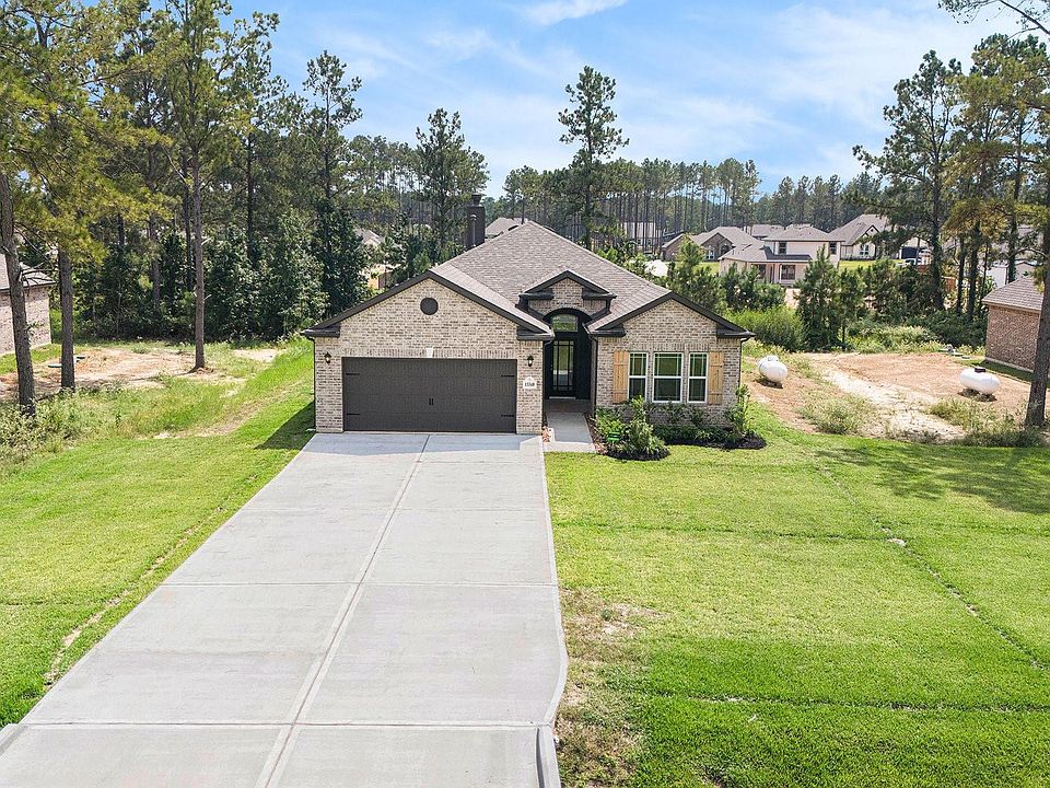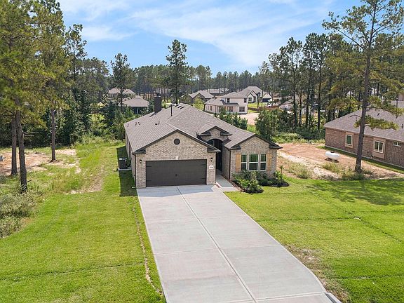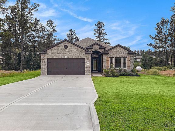 Beautiful single-story home on nearly an acre with 4 bedrooms, 2 baths, study option, and a 2-car garage and 2084 sq ft. The chef’s kitchen features Granite countertops, designer backsplash, built-in oven, gas cooktop, and oversized island open to a spacious family room with corner fireplace. Revwood laminate flooring throughout with carpet in bedrooms only. The private primary suite offers high ceilings, soaking tub, walk-in shower, and dual vanities. Enjoy the extended covered patio with enough space for a workshop, RV, or boat. Includes front gutters, sprinklers and more. Low tax rate, zoned to Willis ISD, and just 15 minutes to Hwy 45, shopping, and Lake Conroe!