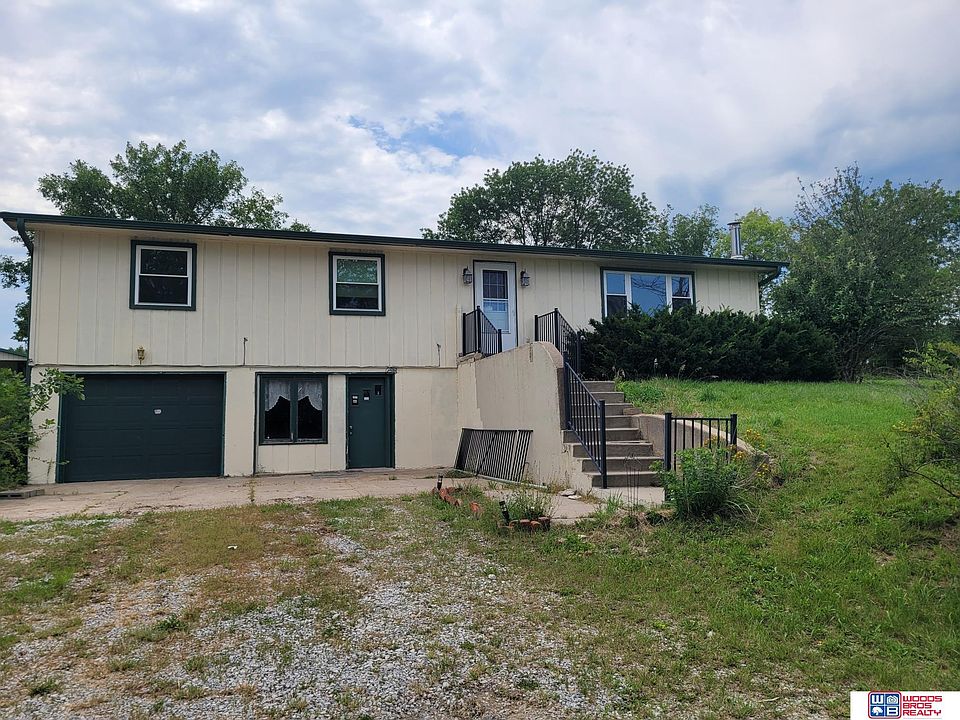 Great Country Setting on 4.97 acres. This all electric 3 bedroom raised ranch home offers a scenic view and is only 1 mile off of a hard surface road. Main level features a spacious living room, kitchen with informal dining. Primary bedroom has a walk-in closet, 2 additional bedrooms and a full bath with laundry hookups. The basement features a large family room with a wood burning fireplace. Home needs new flooring and paint. New roof in 2022. 36 x 60 Lester Pole Shed with 1/3 concrete, 2 horse stalls and a tack room, fencing to pasture area's, fruit trees, a very large garden plot. There is also a 21 x 23 quonset available for additional storage. Home is part of an estate and is being sold as is.