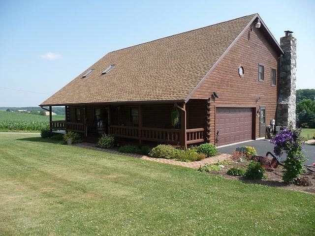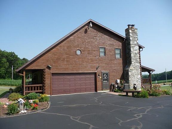 4000+ square foot log home in excellent condition on 1.99 acre country lot. Living room has vaulted ceiling, 2 skylights, and pellet stove. Separate DR, country kitchen leads to 1st flr family room with stone fireplace and 13x30 covered rear deck with skylights. Lower level rec room is 23x38 with kitchen, 1/2 bath, and level walk-out.