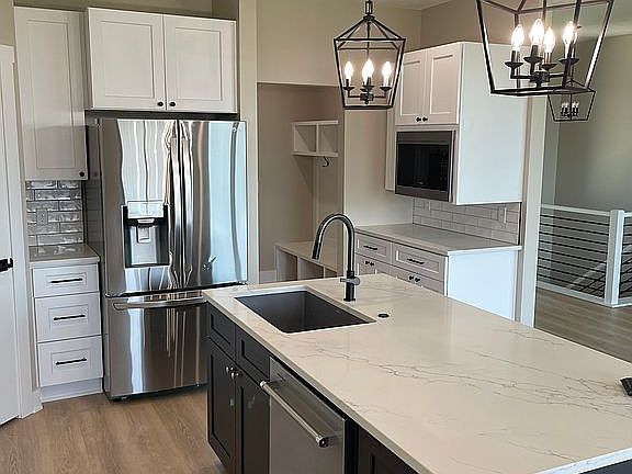 Beautiful open floor plan home includes high ceilings with beams. Large windows overlook walkout basement. Kitchen with large island, pantry, pot filler, gas range, hood & Dining area. Master bath has heated floors, large walk in shower with duel heads, private toilet, large walk in closet next to laundry. Large Walkout basement with bar, Frig, Microwave & fireplace.