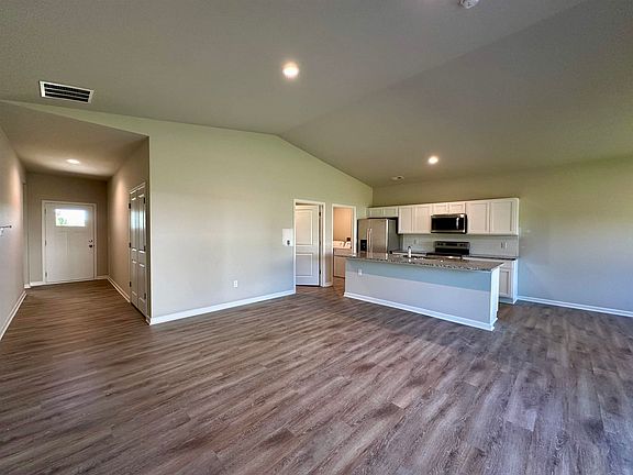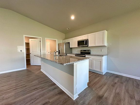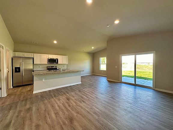 Welcome to 1335 Skyview Dr. "The Independence" by Artistic Builders offers an open floor plan featuring three bedrooms and two bathrooms. The home has a safe room in the garage, 30-year shingle roof, concrete siding, gutters, white cabinets and granite countertops throughout, LVP flooring with carpet in the bedrooms, vinyl windows, gas furnace, electric water heater, and chrome plumbing fixtures. This home is totally turn-key and ready for you! Included are all of your appliances (dishwasher, range, microwave, refrigerator, washer, and dryer) as well as irrigation, sod/seeding, bushes, trees and window blinds! Interior listing photos are from a previously built version of this floor plan. Exterior photo is of the actual home.
