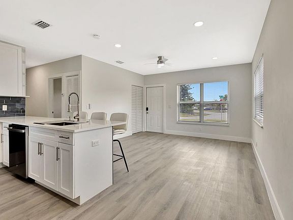 Beautifully updated home on a spacious corner lot with lush lawn, irrigation system, and new privacy fence. The backyard includes a large shed and room for pets, kids, and entertaining. Features a new kitchen with shaker cabinets, quartz counters, and stainless appliances, plus 2 updated baths, impact windows, new flooring, recessed lighting, newer roof, A/C, and new water heater. The 3rd bedroom has a private entrance great for a home office. Includes a separate laundry room with new washer/dryer. Prime location just 2 miles from the beach and minutes to Atlantic Ave dining, shopping, and nightlife.