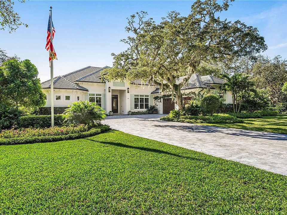 Exquisitely built custom home, situated on a private oak hammock street, showcasing luxurious finishes and well-appointed details throughout. Timeless interiors feature an open-concept chef’s kitchen, an inviting living room, and a gracious master suite. All four bedrooms in the main house have ensuite baths, generous closet space, and an abundance of natural light. Settled on a meticulously landscaped .6+ acre lot, privacy reigns in the extensive outdoor living areas with a resort-style pool and a separate 1BR/1BA guest cottage. Complete with a dock and boat lift for easy Intracoastal access.