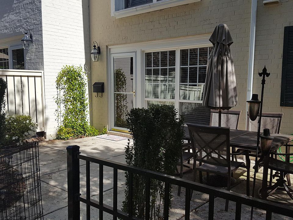 Unique and extraordinarily large 1 bed / 1 bath ground floor condo in a Colonial style all brick architecture. An 18'5" x 14'7" eat-in kitchen w/ tile floor, all stainless steel appliances, gas range w/ microwave, side-by-side fridge, maple cabinets; in-unit laundry room w/ full size W/D. A huge 20'10" x 14'7" living room w/ new flooring, tile, custom blinds. An 14'8" x 17'5" bedroom with new flooring, custom blinds/drapes, with spacious walk-in closet. You'll love the 30' x 10' private outdoor PATIO with trees, bushes & flowers inside your own privately semi fenced-in patio, facing mature trees and a grassy courtyard, with plenty of room for outdoor furniture and a grill! Unassigned outdoor parking for 2 cars per unit. Parkside at Alexandria offers great community amenities including a swimming pool, fitness center, clubhouse, and tot lots. Wonderfully convenient location to live in Alexandria and walking distance to MARC Center, 12 minute commute on public transportation to the Pentagon, a short drive to Fort Belvoir or D.C. Smoke free Pet friendly