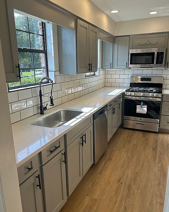 ALL NEW kitchen with quartz counters, modern tile backsplash, GE appliances and shaker cabinetry. Highest quality new LVP flooring (quality makes a BIG difference on how it wears over time).
