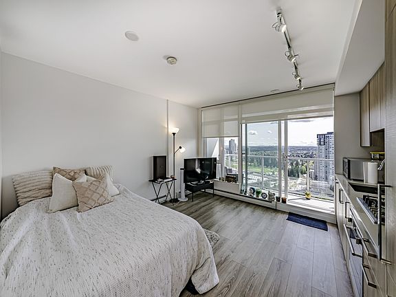 South-facing 28th-floor unit offering stunning city views. Ideally located in the heart of Surrey Central, just steps from SkyTrain, SFU Surrey, shopping, groceries, and more. Perfect for first-time buyers or investors seeking strong rental potential. This home features a sleek modern kitchen with integrated Fulgor appliances, a spacious bathroom, and a covered balcony for year-round enjoyment. Residents enjoy over 20,000 sqft of premium amenities, including a rooftop sky lounge with BBQs and games, a fitness centre, dog park, meeting rooms, and 24/7 concierge service. OPEN HOUSE: Oct 5th, Sun 2-4PM.