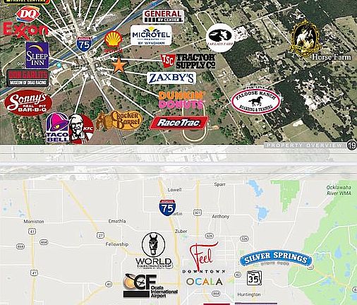 B-2 Zoning already in place. Great site for two hotels, multifamily,or retail/restaurant parcel. Concept available. Located 1/4 mi W.of 484/I-75 Exit. Your neighbors are Cracker Barrel, Sonny BBQ, Tractor Supply, MicroTel - GREAT LOCATION. Hacienda-style house on property. Nice Elevation, Paved Corner, about 300 ft N of Traffic light at intersection of 475A & amp; 484. Appointment required.Call listing office for details and survey.