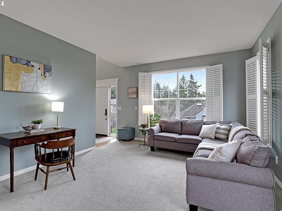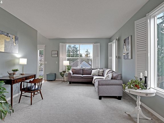 NEW ROOF, NEW FURNACE, FRESH EXTERIOR PAINT! Imagine on a clear day, waking up to a view of Mt. Hood in the wonderful community of Bull Mountain! This spacious 2,745 Sq Ft home has commanding curb appeal as it is perched on its lot with side entry garage off the half cul-de-sac. With 3 bedrooms plus a den and bonus room, it offers ample space for you and yours. As you step into the formal foyer you will begin to notice the rich traditional millwork and plantation shutters. This home is flooded with natural light with abundant large windows, high ceilings and a fresh feeling throughout. The kitchen has been updated and features white wood cabinets, black granite slab counters, and higher-end stainless-steel appliances. Get cozy on cool days as the family room with gas fireplace awaits and is open to the kitchen and nook. The den on the main with French door entry and a closet could serve as an additional bedroom. Retreat upstairs to the spacious primary suite with tray ceiling and a wall of windows framing the majestic Mt. Hood view. Two additional bedrooms and a bonus room offer flexibility. Easy-care back yard is just the right size to hang out with friends, family and pets and no grass to mow! This home also features a 3-car garage, hot tub, and a new composition roof. Conveniently located, just a 5-minute drive to restaurants and groceries plus easy access to shopping at Progress Ridge, Washington Square and Bridgeport as well as a short commute to Nike and Intel. Make this your dream home today! Roof, furnace and exterior paint all completed in 2023. Hardwood floors can be refinished prior to closing with a full-price offer.