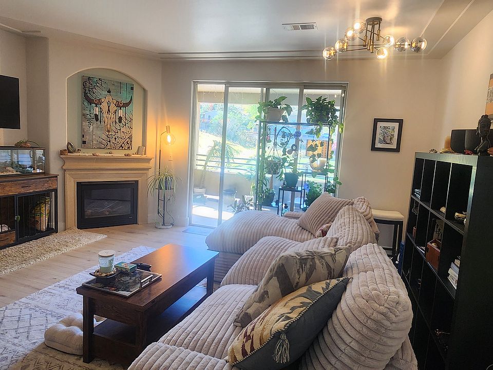Fully-furnished, spacious, quiet, and private 1-bedroom, 2-bathroom condominium boasting large floor plan, tall ceilings, and a West-facing views of the Foothills (appx 1600 sq ft). Includes: kitchen with pantry and bar area, living room with a gas fireplace, large patio and a killer view, 1 master bedroom with private bath and giant walk-in closet, 1 large, well-lit entry way office perfect for working from home, and a set of new, over-sized laundry machines. Furnishings include all you see in the photos. Utilities are included, except for Xcel gas/electric.