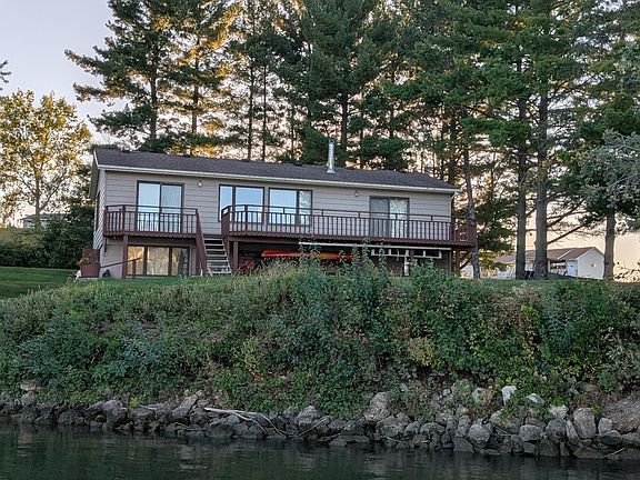 Location, location, location, on Lake Zumbro!! 166 ft of shoreline, .47 acres, stunning views, this is a prime setting with sandy beach as far as you can walk out, nice shoreline and a 24x32 garage with 16 ft doors in the front of garage and 10 ft door on the back. The house offers 3 bedrooms and 2 baths. The living room is a wall of windows to take in the amazing lake views. Sliding doors in the primary bedroom to the deck on the lakeside to sit and have morning coffee and enjoy the views. Lower-level family room with windows to enjoy the lake once again! This house was built with the lake in mind!