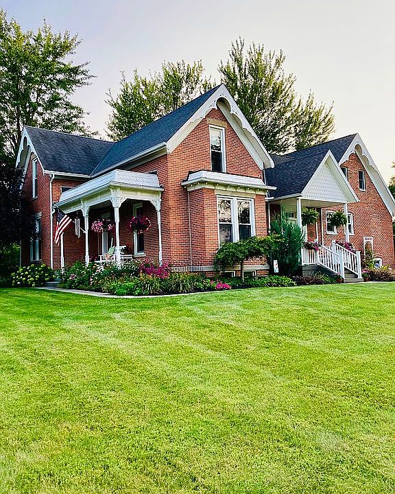 Beautiful historic brick home with many modern updates. 4 bedrooms , 3.5 bathrooms on approximately 3 acres just south of Spencerville on the historic Miami Erie Canal. This home features original hardwood floors and woodwork. The updated eat in kitchen has custom cabinets and quartz countertops. Downstairs also contains dining room, living room, family room with gas fireplace, office area and 1/2 bath. Master bedroom and bathroom were added in 2003 and are upstairs but separated from the three secondary bedrooms and bath. Partial unfinished basement with second gas fireplace, laundry and full bath. Attached one car garage and detached 952 square foot , all brick two car garage with workshop and open staircase to large stand up attic. Two porches and a deck for enjoying the outdoors. Mature trees and landscaping. Call 419-203-7409 for a tour.