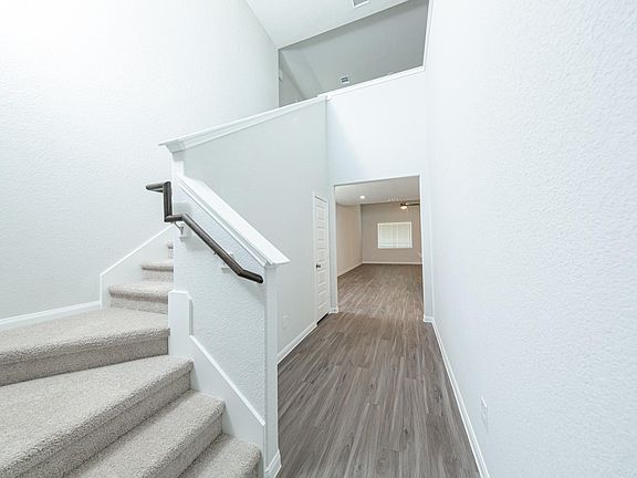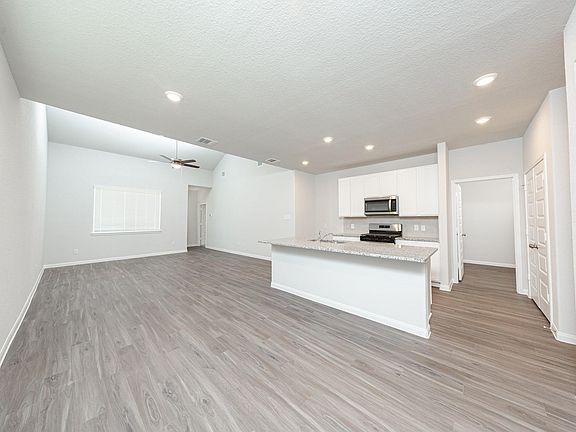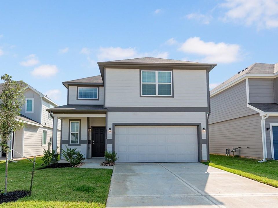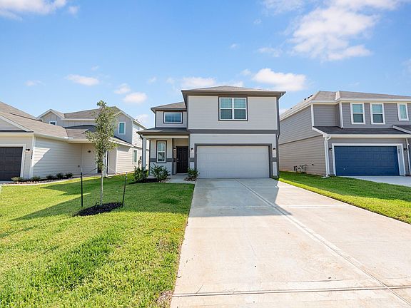 River's Edge is a coveted new construction community near The Woodlands in Conroe, Texas. The Wisteria plan is a 2-story plan that comes standard with 4 bedrooms, 2.5 baths, family room, and upstairs flex room. It features an impressive 2-story foyer, 1st floor primary suite, and upstairs game room. Upgrades include - 2-story foyer, Bay window at primary suite, Granite countertops in primary bathroom, Granite countertops in secondary bathrooms, Sod front and back, Stainless steel appliances, Vaulted ceilings in family room, Walk-in closets in secondary bedrooms, and White cabinetry.