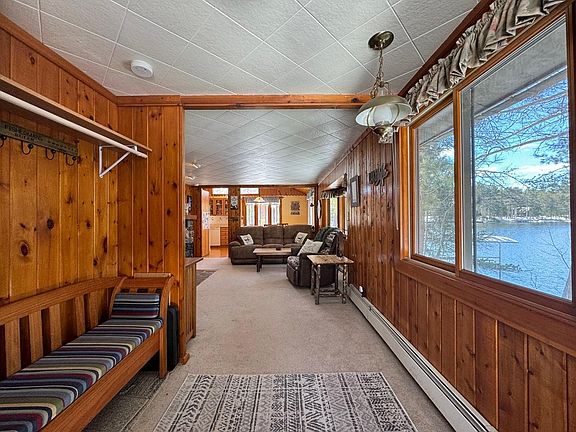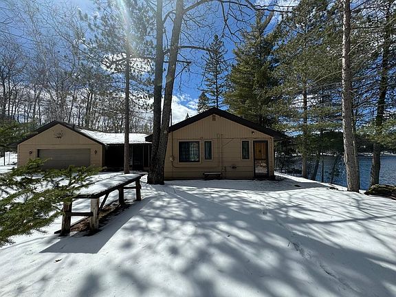Beautiful 3 bedroom, 2 bath home sits near the edge of the water in a large bay between Rest and Stone Lakes on the beautiful Manitowish Chain of 10 lakes! This gem is loaded with gorgeous Northwoods charm and has just a fantastic view! Inside you’ll find beautiful knotty pine and a stunning stone wood burning fireplace with custom built-in bookcases on each side. The kitchen offers a cathedral ceiling, gorgeous wood cabinets, built in pantry and is open the dining area with glass patio door showcasing the lake view! Spacious Master bedroom offers 2 closets, built in dresser and patio door to screen porch. Attached 2 car garage with upper storage, separate storage shed with electric & cold water, new septic tank, new furnace and nice landscaped firepit area. Nice horseshoe dock system with lift included and sandy frontage begging you to play in the lake. All this comes with the most amazing sunsets with this fantastic western exposure! Come take a look! Shown by appointment only.