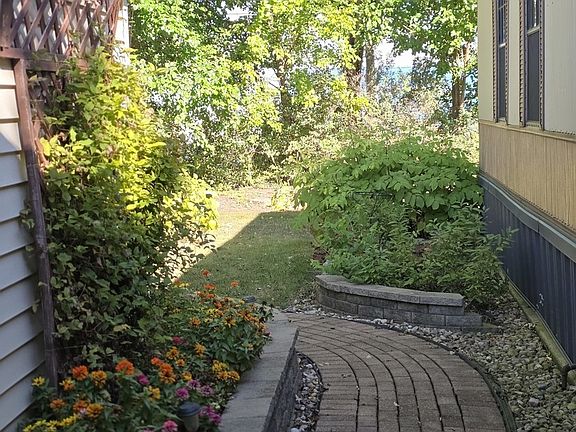 Charming 2 bedroom, 2 bath Danville model by Redman Homes! Before you take a step inside, follow the path to the backyard! A beautiful mix of flowers and perennial plants make this back yard living space feel private. Storage shed on the rear of the garage! This home has had one owner since 1988! Enjoy the open concept in the main living space of this home. Plenty of room to gather in the kitchen/dining area open to the living room. 7X21 expander gives ample room in the dining/living room. This home has been well maintained and taken care of yearly! The primary bedroom has its own bathroom with a soaking tub/shower! Ample storage in the bathroom for linens. On the opposite side of the home, you can find the second bedroom accompanied by another full bathroom! Enjoy the 3-seasons room off of the dining room, perfect for a morning coffee! Don't forget to take a look at the oversized 2-car garage that is fully heated and cooled! This garage is heavily insulated as is the roof on the home. Furnace new in 2016, water heater new in 2019. Heat tape new in 2024. Come take a peek at this comfortable home located on the back edge of Hilltop mobile home! No backyard neighbors!