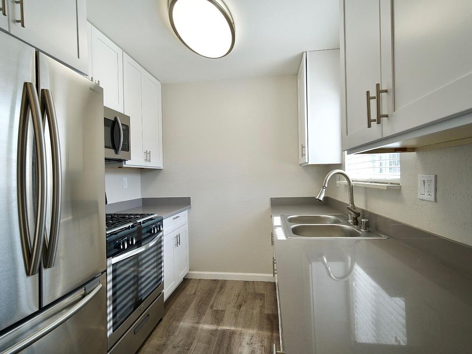 One story two-bedroom apartment located on the second floor of a recently updated building and living space. Stainless kitchen appliances including gas stove. Hardscape flooring and updated bathroom. Private patio. Laundry facilities onsite.