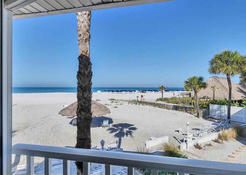 Lido Beach gulf-front vacation condominium, book your dream vacation now! So close you can almost kiss the sand. No time to travel? Escape to gorgeous Lido Key. Four sliders open onto the expansive view of the sugar sand beach from the finished Florida room. You will never want to leave this two-bedroom, two-bath condominium in the Mark Twain. King in the primary bedroom, a full bed and one twin bunk bed in the second. Fully equipped kitchen, dining for six or more, over 1,500 square feet under air. The Mark Twain offers beach chairs, a communal cabana and Wi-Fi. St. Armands Circle is close by with many shopping and dining options and just over the Ringling Bridge all the arts, culture, shopping and dining that downtown Sarasota offers await you! (All rates are plus taxes and fees.) Please note the Mark Twain community sustained significant damage, this unit was not impacted, but work will be ongoing throughout the first-floor units. (Booked 2/1/26 to May 12, 2026).