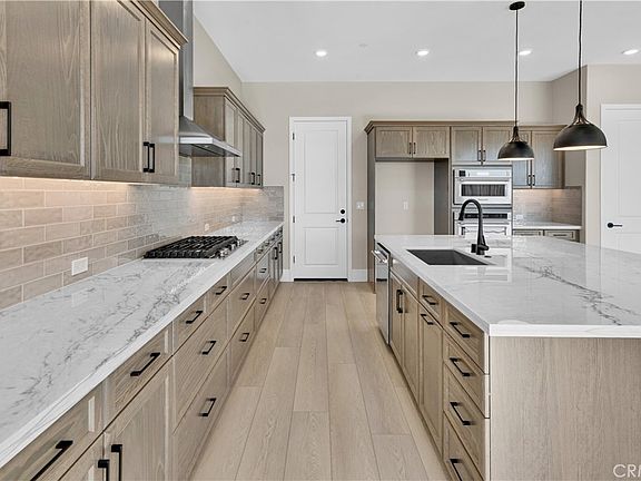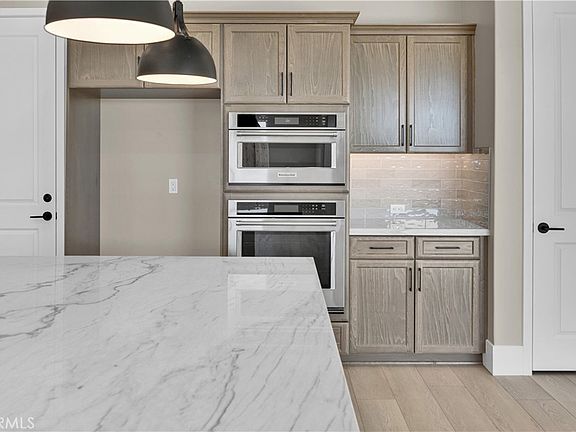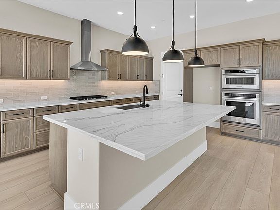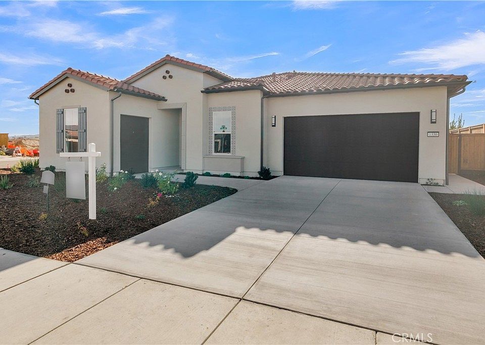 Discover modern sophistication by visiting Nevina, a 55+ community, set in the heart of Paso Robles wine country. This stylish Proclaim II home features a gourmet kitchen with upgraded quartz countertops, a designer tile backsplash, premium KitchenAid stainless steel appliances, and rich driftwood-stained cabinetry. The open-concept great room is anchored by a dramatic rolling wall of glass that extends the living space to a covered patio, landscaped backyard, and gas BBQ stub—creating the perfect stage for entertaining or quiet evenings outdoors.
