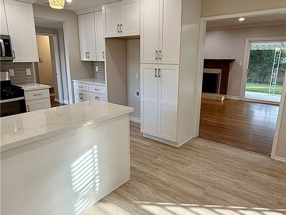 Gorgeous North Glendora home with stunning mountain views! This beautifully updated residence features a fully remodeled kitchen that opens to a warm and inviting great room. The kitchen offers recessed lighting, brand-new cabinetry, quartz countertops, a gas oven/stove, and an open-concept layout perfect for entertaining. New laminate flooring and gorgeous hardwood floors flow throughout the home. The spacious living room includes a cozy fireplace, recessed lighting, and direct access to the backyard. The home offers 3 bedrooms, all with hardwood floors, including a primary suite with double closets and an en-suite bath. Additional highlights include an attached oversized garage, a large backyard with a covered patio, and an expansive driveway providing ample parking. Conveniently located within walking distance to award-winning Glendora High School and close to shopping and public transportation.Gorgeous North Glendora home with mountain views. Beautifully remodeled kitchen leading to a warm, invitng great room. The kitchen features can lighting, brand new cabintery throughout, quartz counter tops, gas oven/stove and an open concept. ew laminate flooring and gorgous hardwood floors adorn this home. Good sized living room complete with fireplace, can lighting and access to the backyard. 3 bedrooms with hardwood floors and a primary bedroom with double closets and onsuite bath. Other highlights include an attached, oversized garage, big backyard with a covered patio and very large driveway for your cars. Walking distance to award winning Glendora High School and close to shopping and public transportation.
