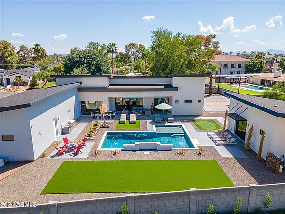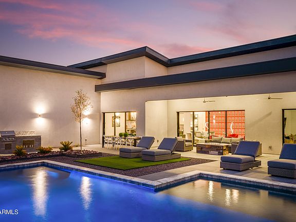 Once in a blue moon a house comes along so beautiful, so luxurious, so flawless, that simply put, it is PERFECTION! I am pleased to present ''THE VERSACE VILLA,'' a 7 bed/ 4.5 bath 2021 custom built haven of extravagance where no detail was overlooked. From the moment you enter you will be embraced by the timeless elegance of the opulent Versace decor and the highest builder upgrades. The European design of the open kitchen and family room leading directly to the resort like backyard allows for the perfect harmonious flow between indoor & outdoor living! Immerse yourself in the sprawling pool, pickle ball court, basketball, custom ping pong table, and shuffle board, to name a few! All this in an Ultra Private Cul-de-Sac, sperate Casita, & Mountain views!