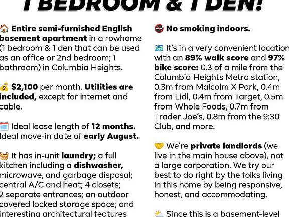 This 760 square foot apartment home has 1 bedrooms and 1.0 bathrooms. This home is located at 1336 Fairmont St NW #B, Washington, DC 20009.