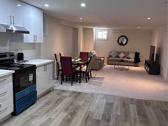 Stunning super bright brand new fully furnished 1 bedroom legal lookout basement apartment of a detached house in one of the desired neighborhood in Milton, with open concept kitchen, dinning and living area. Separate washer dryer. This is fully furnished rental unit never been rented before. All furniture including queen bed, small wardrobe, 65inch smart TV, sofas, dinning table, all required electronics and appliances comes with the rental. Separate entrance from the side of the house and on site parking with full privacy. A perfect place for a couple . Utilities to be discussed. Only serious inquiries please. NO SHORT TERM RENTAL ONLY LONG TERM LEASE. Tenant pays all utilities at 30% of the total monthly bill. This is to be discussed during the lease process. 1 parking on owners drive way is included with the rent . NO PETS ALLOWED.