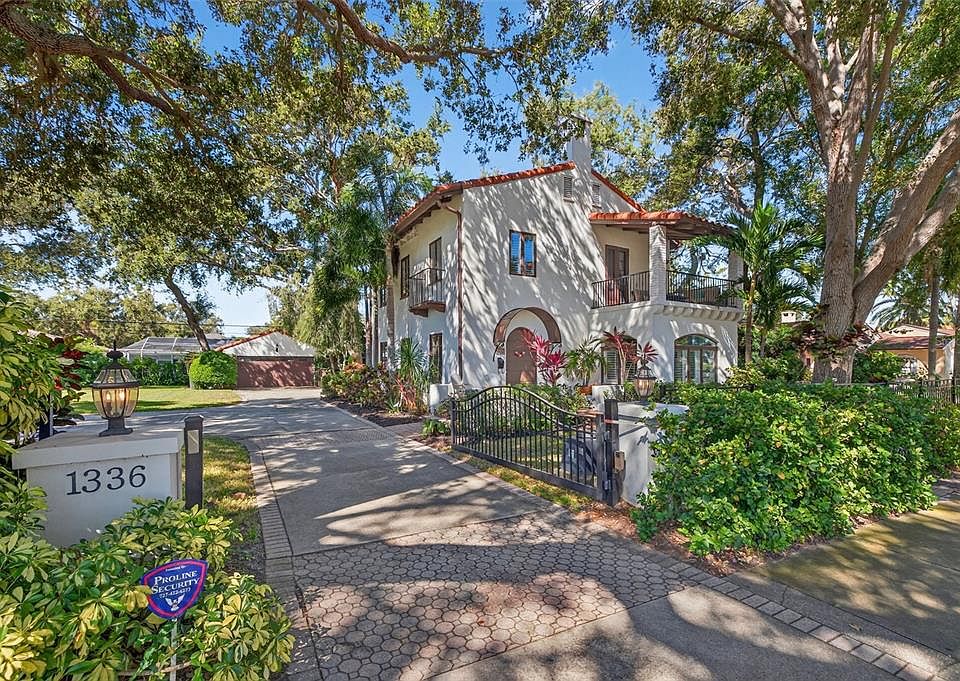Experience the timeless elegance and rich heritage of 1336 Indian Rocks Road. Set behind private entry gates on a 0.33-acre, park-like lot, this stately residence is framed by verdant landscaping and meticulously maintained grounds that provide exceptional privacy in the heart of Belleair. Designed for effortless indoor–outdoor living, the home features a wraparound deck ideal for al fresco dining, weekend gatherings, and quiet sunset moments. Inside, contemporary comforts blend seamlessly with original bespoke craftsmanship. Classically proportioned living and dining rooms create an elegant backdrop for entertaining, while thoughtful updates ensure day-to-day ease. Accommodations include a spacious primary suite plus three guest bedrooms—one of which lives like a second primary, featuring an en suite bath and a private balcony for a truly retreat-like experience. The cozy family room, anchored by a fireplace, invites relaxed evenings, and a well-appointed bar sets the scene for cocktails with friends. Convenience meets luxury in this central location: walk across the street to Pelican Golf Club, or take your golf cart to Belleair Country Club. Morton Plant Hospital and world-renowned Clearwater Beach are just a short distance away. Balancing heritage charm with modern livability, 1336 Indian Rocks Road is a sanctuary to savor for years to come.