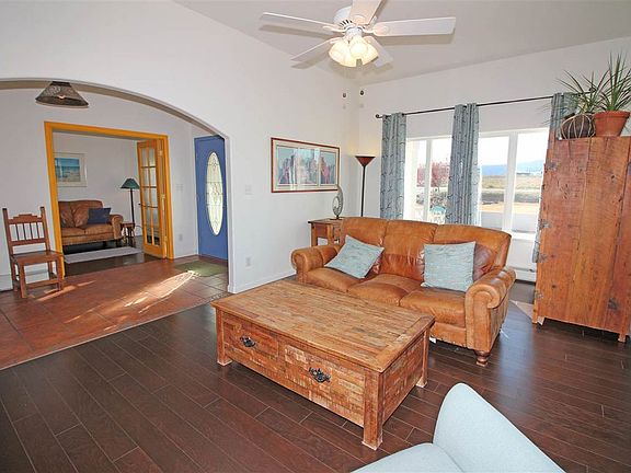 Large ranch style home situated on almost 4 irrigated acres w/ wonderful views & privacy. You will enjoy the peace & quiet of a country location but still only about 10 minutes into town! With nearly 2400 square feet you will love this 4 bedroom home w/ 2 baths and 2 car garage. There is plenty of space for RV parking, livestock or building a large shop. Vaulted ceilings, wood laminate floors, stainless steel appliances & a desirable split bedroom design this one is set up perfectly for those who want all their living on one level & also don???t want the restrictions of an HOA! You are also sure to enjoy the north facing back patio that is situated to avoid the late afternoon sun. This one is ready for new owners.