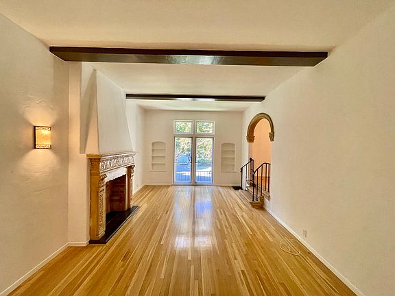 Listed in the National Register of Historic Places - West Hollywood's Harper House was designed by architect Leland Bryant in 1929. The elegant Spanish-style courtyard complex currently has a huge, MUST SEE, First floor 1 bedroom + 1 bathroom unit available. Gorgeous One Bedroom unit with beautiful street views and vintage details. Large entry with a coat closet, Grand main living room with an ornate decorative fireplace, arches, crown molding, french windows and high beamed ceilings. Hardwood flooring throughout the unit. Separate dining room off the kitchen and living room. Kitchen has tons of cabinets, new quartz countertops, stainless steel fridge and a stove. Hallway has built in storage. Bathroom has vintage charm with a tub, separate shower, storage space, and tiled flooring, Bedroom with wall sconces and a closet. Beautiful pond in the common courtyard area. Attached garage parking for ONE (1) car ONLY. Laundry on site. Elevator Access. Well behaved small pet okay, restrictions apply. Fabulous WeHo location! Walk to grocery stores, restaurants, shops, gyms and fitness studios, entertainment, bars and clubs! Professionally managed by Crescent Management. This property is shown by appointment only. To schedule a viewing, please text/call Sienna with Crescent Management. One year initial lease term; month-to-month following initial one-year term. Tenant responsible for Gas, Electricity, Cable/Internet/Phone. No Smoking. One (1) assigned parking space included in monthly rent.