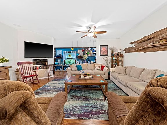 Charming 3-bedroom, 2-bath home blending rustic warmth with modern updates. The inviting exterior features a spacious drive and covered entry, while inside you'll find a spacious livingroom and a dining room featuring a beautiful rock fireplace, stunning great room with soaring ceilings, exposed beams, and abundant natural light. A wall of windows offers serene views of the surrounding greenery, creating a perfect setting for relaxation or entertaining. The updated kitchen boasts granite countertops, double ovens, gas stove, ample storage, and open shelving for a vibrant, personalized touch. Enjoy the versatility of the large sunroom-style living area, ideal for dining, hobbies, or gatherings. Set on a lush lot with a creek, mature trees, this property offers the perfect balance of comfort, character, and convenience. Two manufactured homes sit at the front of the property on the .408 acre parcel, currently bringing in monthly rental income.